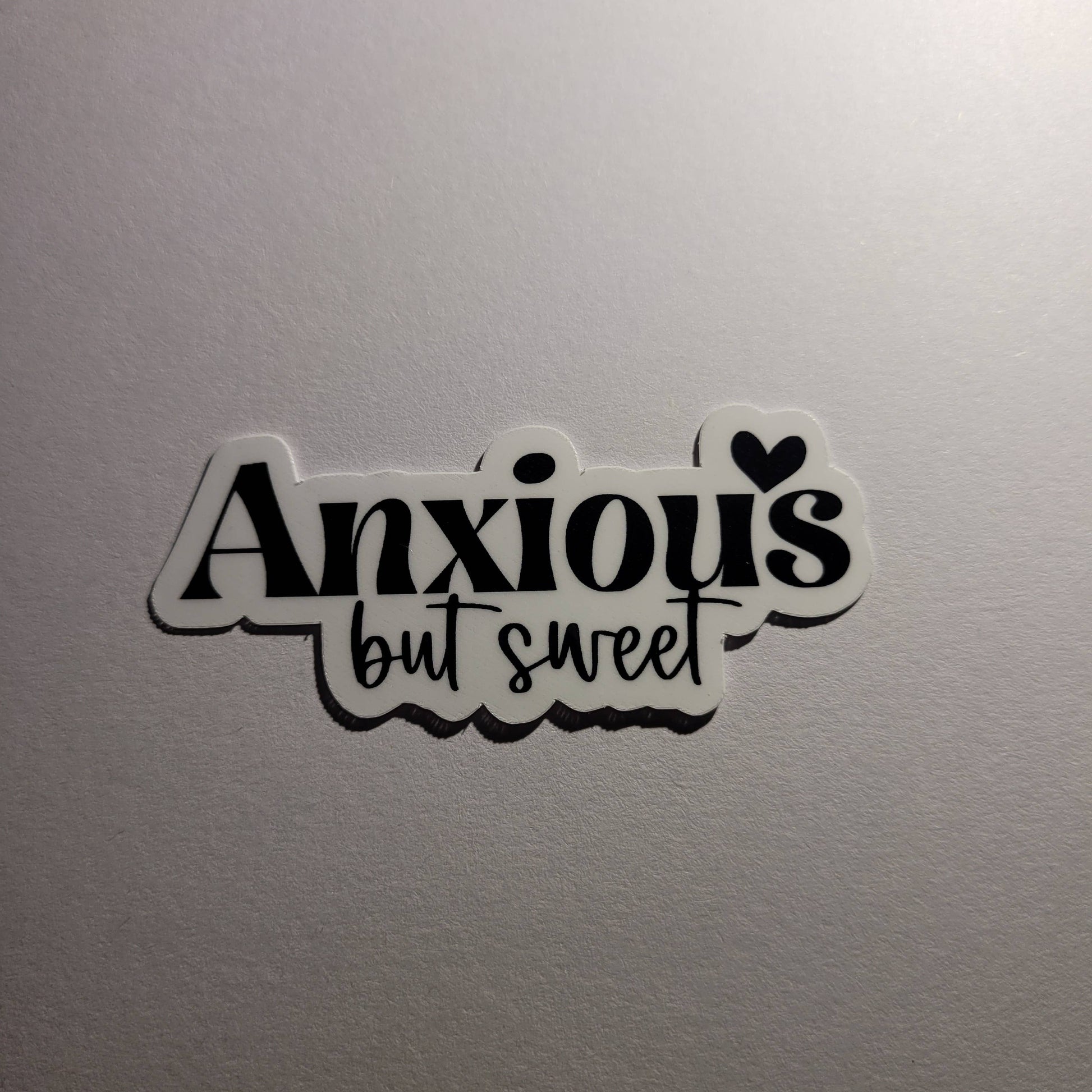 Anxious but Sweet Sticker is perfect for your shop. These are great to sell or add to your packaging for your customers. Thick, durable vinyl protects your die cut stickers from scratching, rain & sunlight. Sticker size approximately: 2.5in x 1 in
