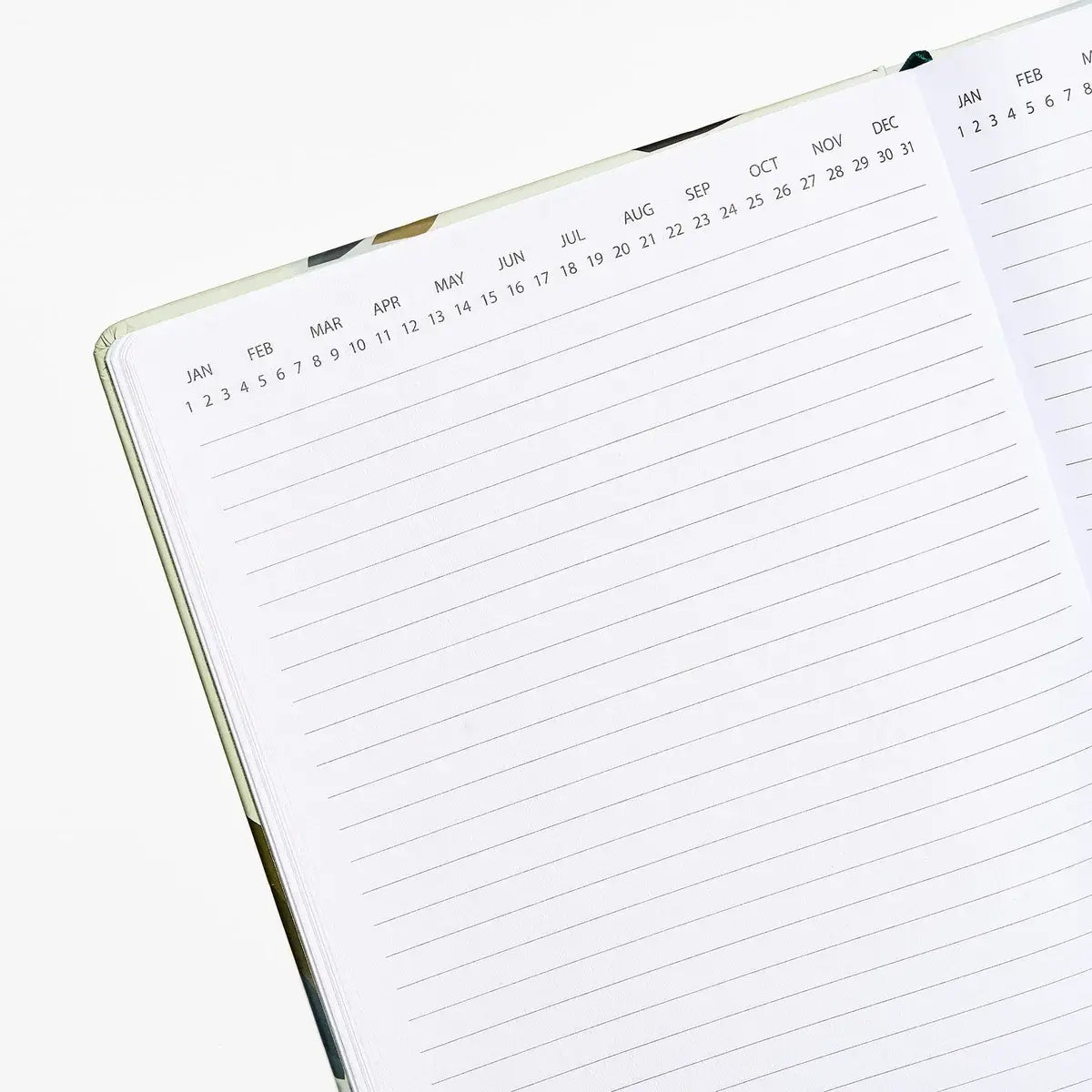 - -Month and day across the top to keep track of your thoughts