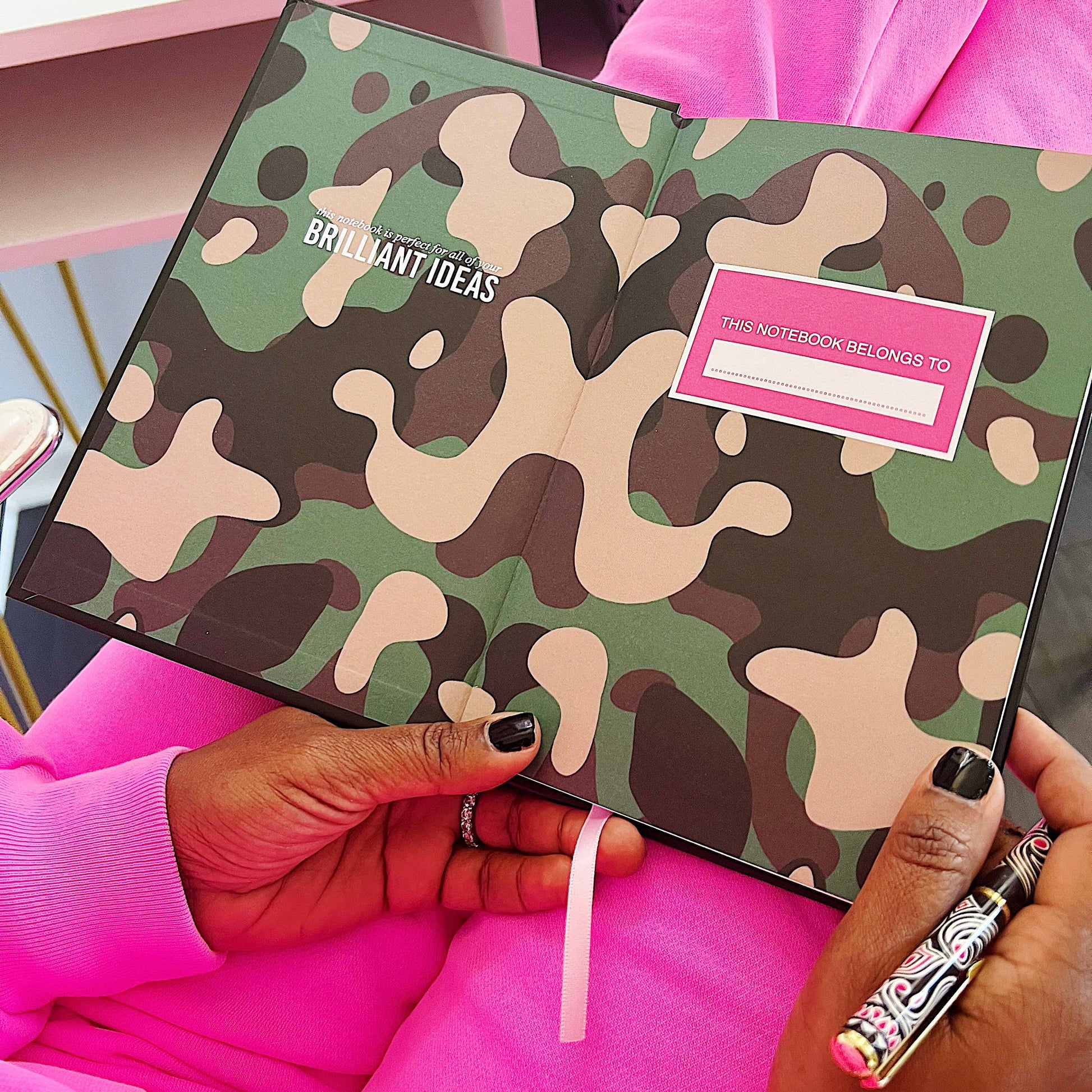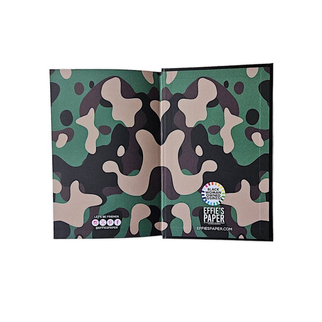 Featuring stylish camo end pages, 200 crips white lined pages, and a ribbon page marker.