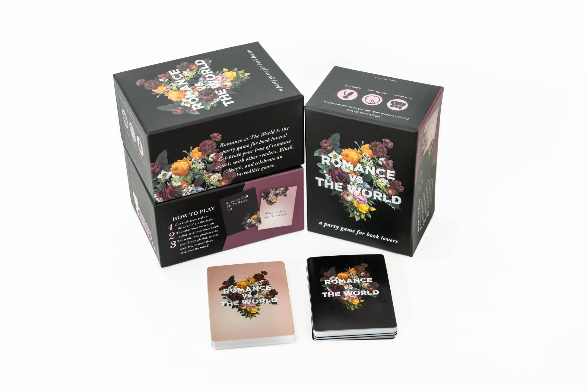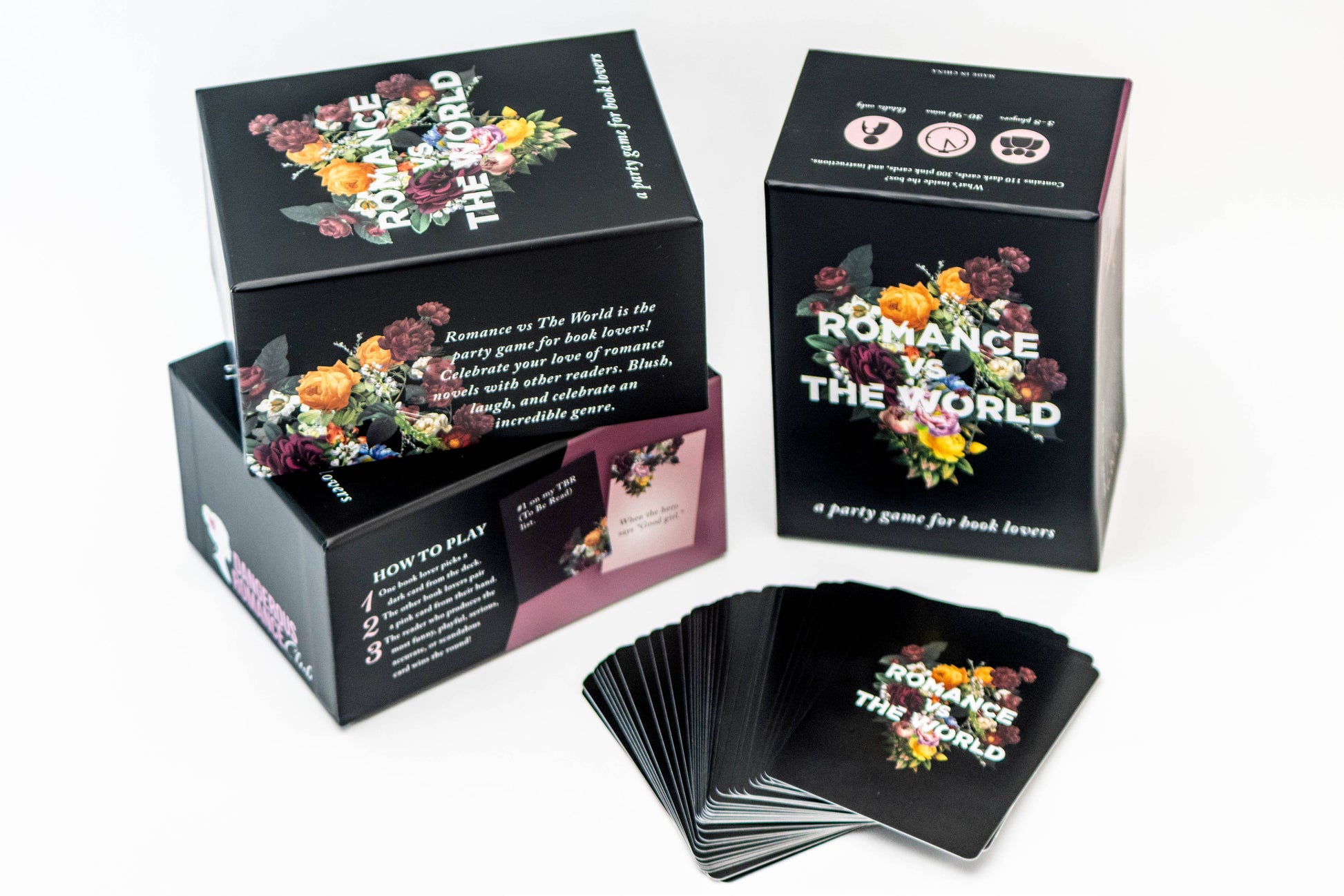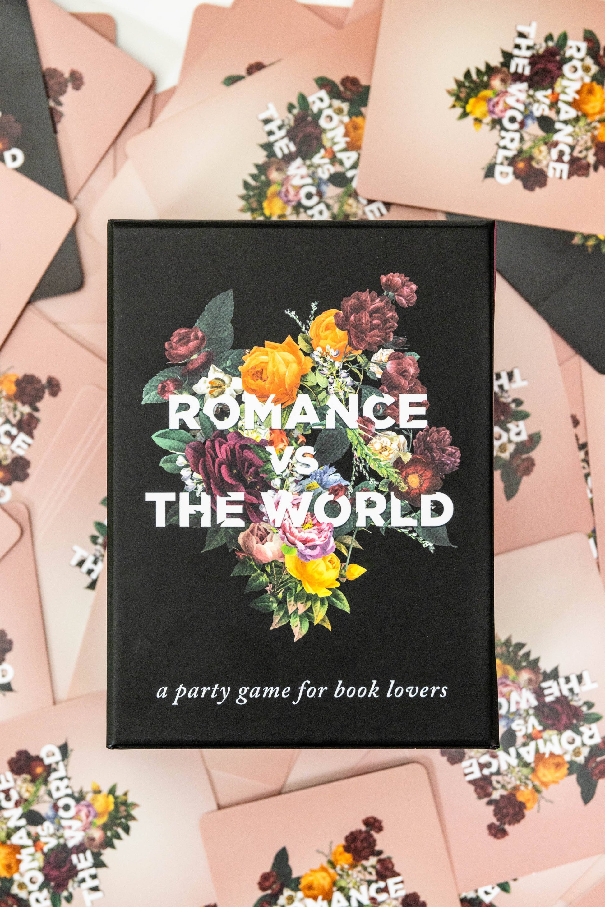 Romance vs The World is the party game for book lovers! Celebrate your love of romance novels with other readers. Blush, laugh, and celebrate an incredible genre. Each box contains 320 pink cards and 110 dark cards for hours of fun. “Omgggg we played this game at a book swap meet up and it was SO. FUN!!! I was laughing so hard I was crying!” – Kait | BookTok